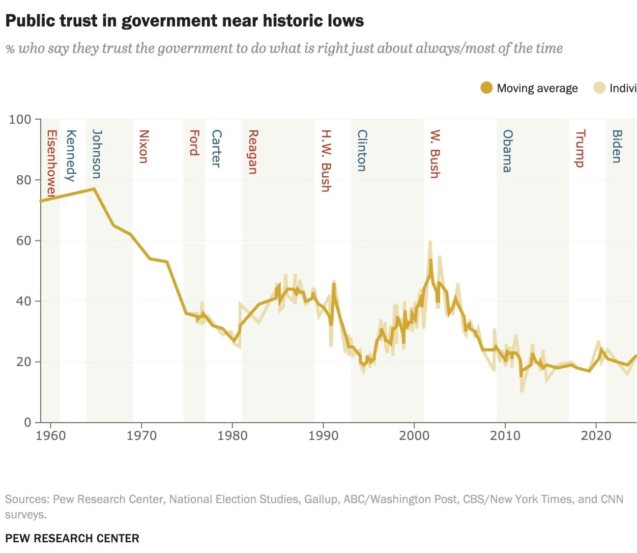 Just 17% of Americans now say they trust the government in Washington to do what is right “just about always” (2%) or “most of the time” (15%).